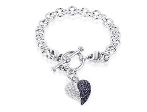 0.50crt Heart Bracelet Charm Sapphire & diamond In Sterling Silver