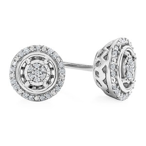 1/10 Carat Natural Diamond Halo Stud Earrings in Sterling Silver