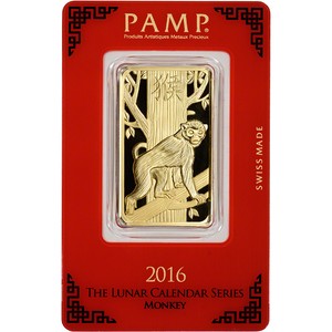 1 oz. Gold Bar - PAMP Suisse - Lunar Year of the Monkey - 999.9 Fine in Assay