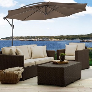 10' Hanging Umbrella Patio Sun Shade Offset Outdoor Market W/ Corss Base Tan