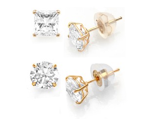 14k Solid Yellow Gold 2.00Ct Swarovski Element Round or Princess Stud Earrings