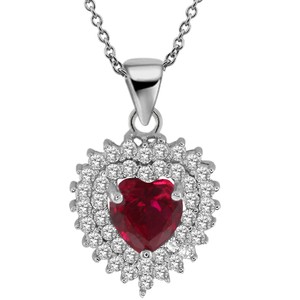 2.34 Ct Heart Shape Red Created Ruby 925 Sterling Silver Pendant with 18" Chain