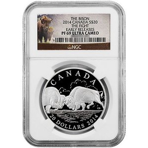 2014 Canada Silver Bison The Fight 1oz PF69 UC ER NGC Bison Label