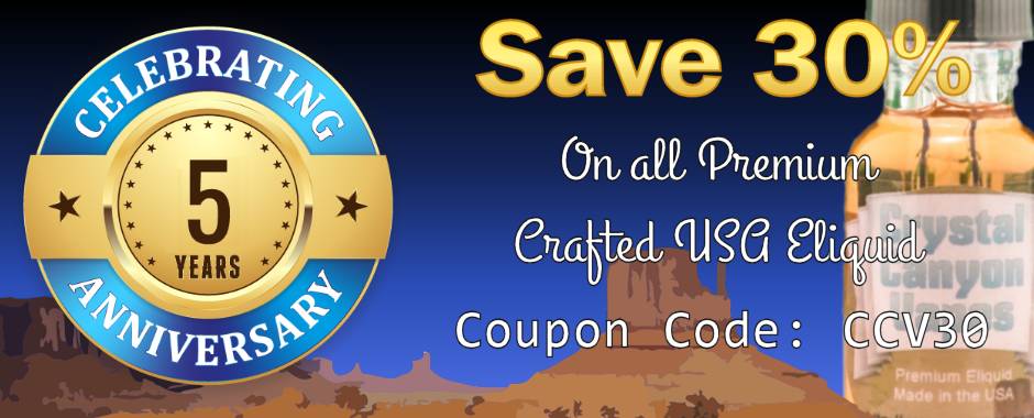 30% Savings on all hand crafted premium eliquid from Crystal Canyon Vapes! Use coupon code CCV30