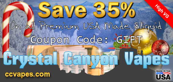 35% Savings on all hand crafted premium ‎eliquid‬ from Crystal Canyon Vapes! Use coupon code GIFT