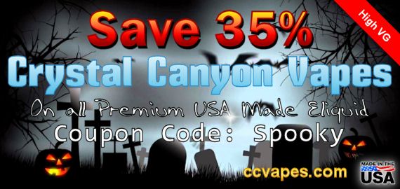 Its time to scare up some Halloween savings at Crystal Canyon Vapes! 35% Savings on all hand crafted premium eliquid! Use coupon code SPOOKY