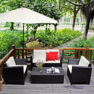 4PCS Patio Furniture Rattan Sofa Set Outdoor Wicker Sectional W/ Cushions Coffee