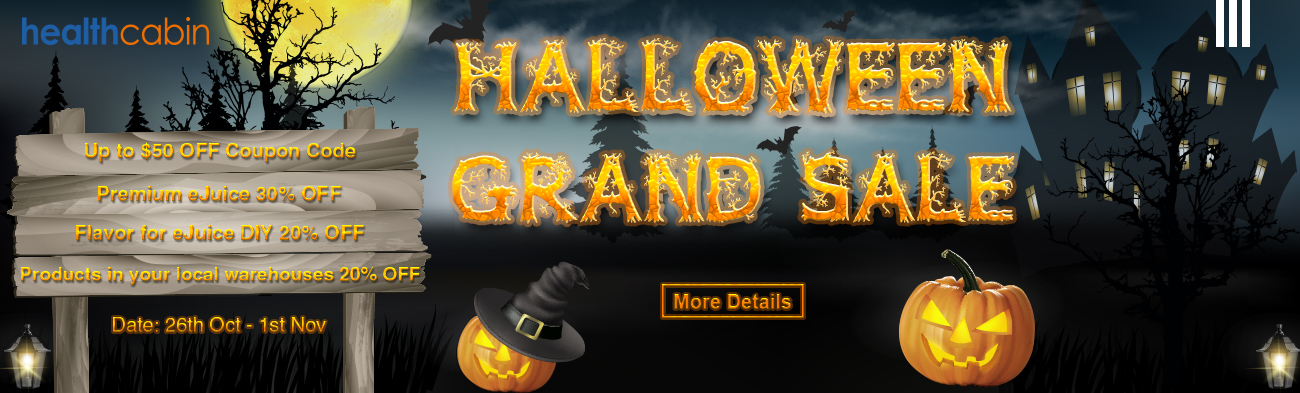 Hi vapefam, whether you’re looking to save huge on our massive collection of Premium E-liquids, or maybe you just feel like treating yourself to some new vape gears, HealthCabin Hollween Sale is one of our biggest events to date and the best way to save HUGE on everything you need. Let's check them out: