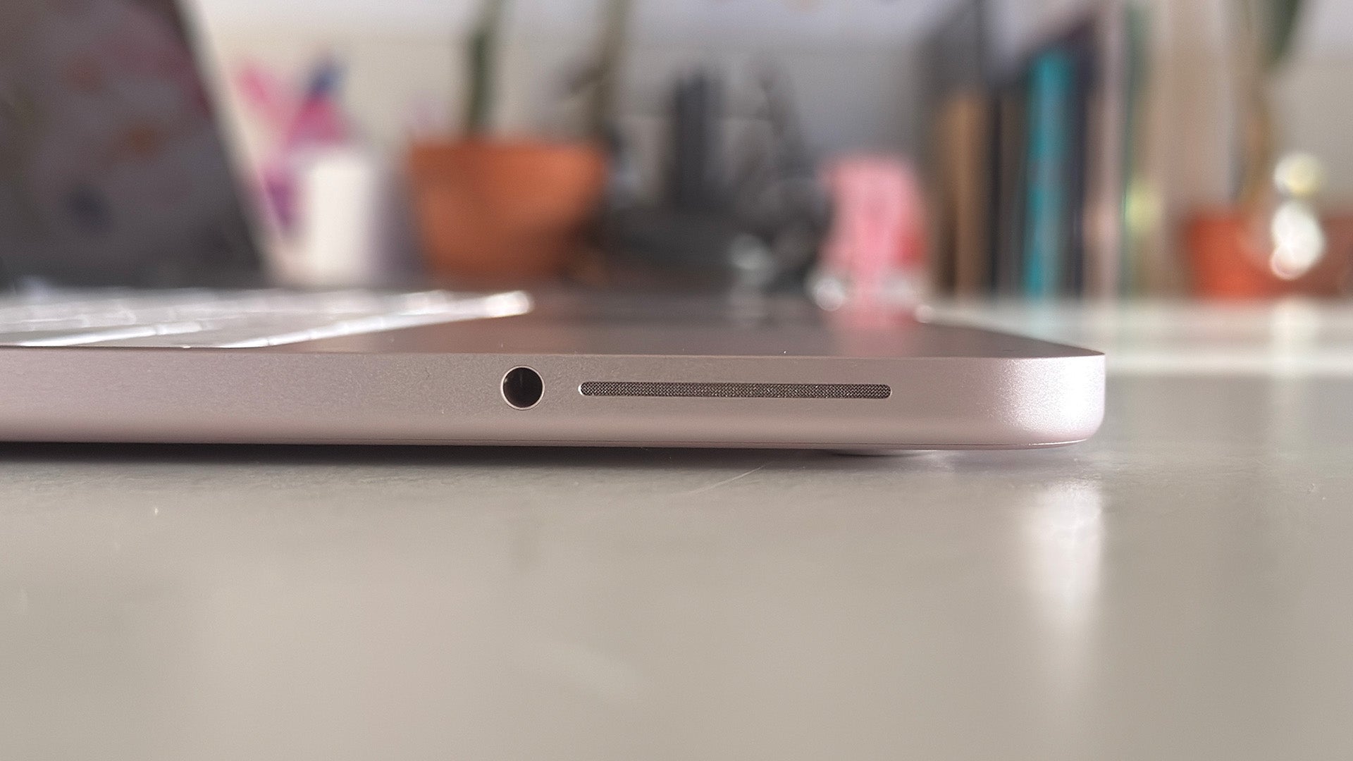 The Neo’s speakers are side-firing instead of tucked into the hinge as on the Air. They still sound remarkably good by comparison to other cheap and even midrange laptop speakers, though, with balanced sound that even has a little bass and never comes across as tinny or unreasonably neglectful of any part of the audio spectrum. They apparently support Dolby Atmos, but they produce a pretty narrow soundstage – a hoity-toity term for how spread-out the sound seems – compared to my M2 Air, and even narrower compared to the M1 Air that had speakers firing right up at you from either side of the keyboard. But whatever. This is a budget laptop; speakers usually feel like an absolute afterthought.