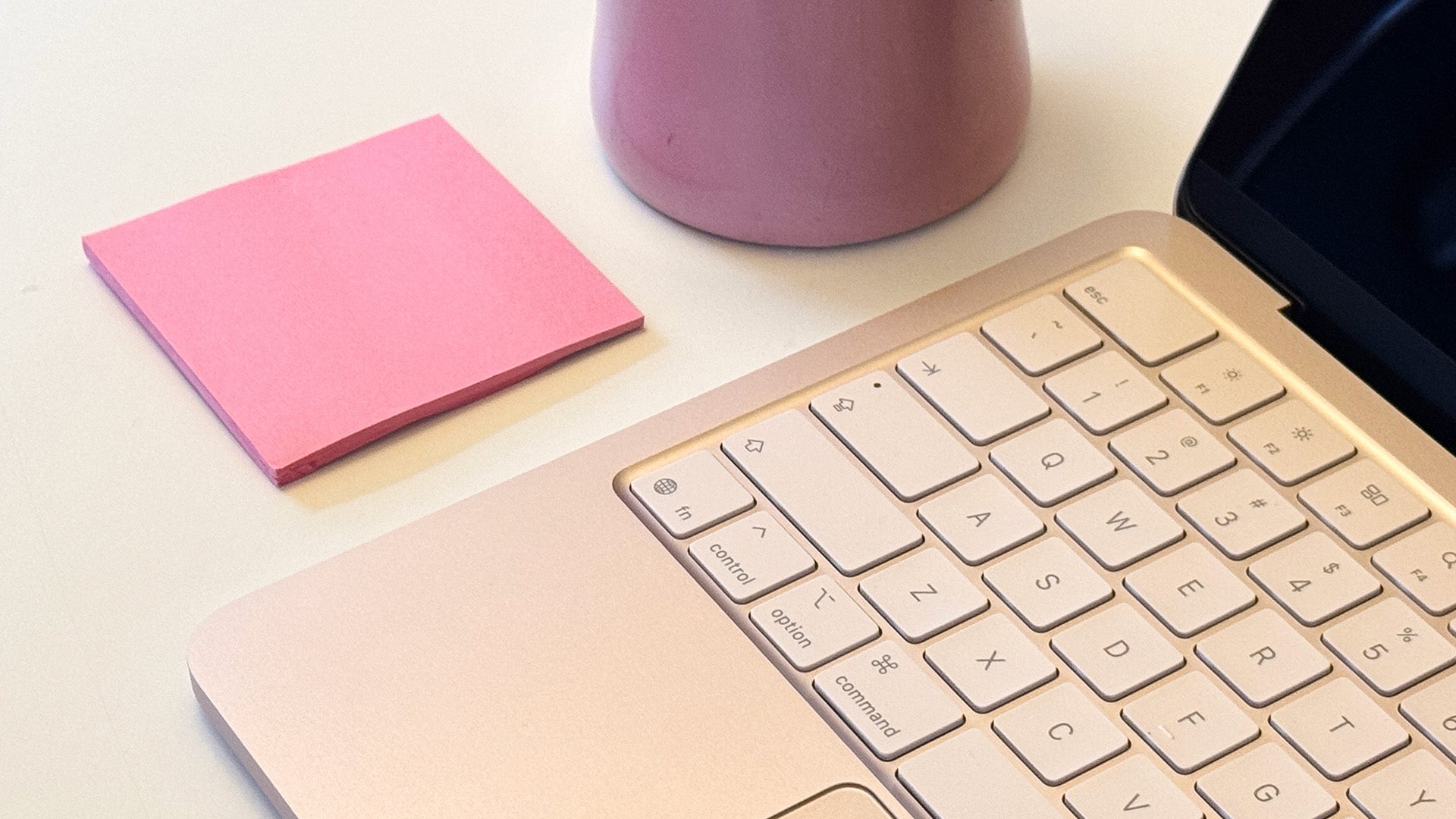 The keyboard feels great, too. The keys themselves are ever-so-slightly mushier than on my M2 MacBook Air, but this is otherwise the same keyboard, down to the Touch ID sensor in the upper right corner – at least, on the 512GB version of the Neo, which costs $100 more. (It’s just a power button on the base $599 model.) Apple gave the keys a creamy tint that, on the Blush model, shifts between light pink and off-white, depending on lighting.