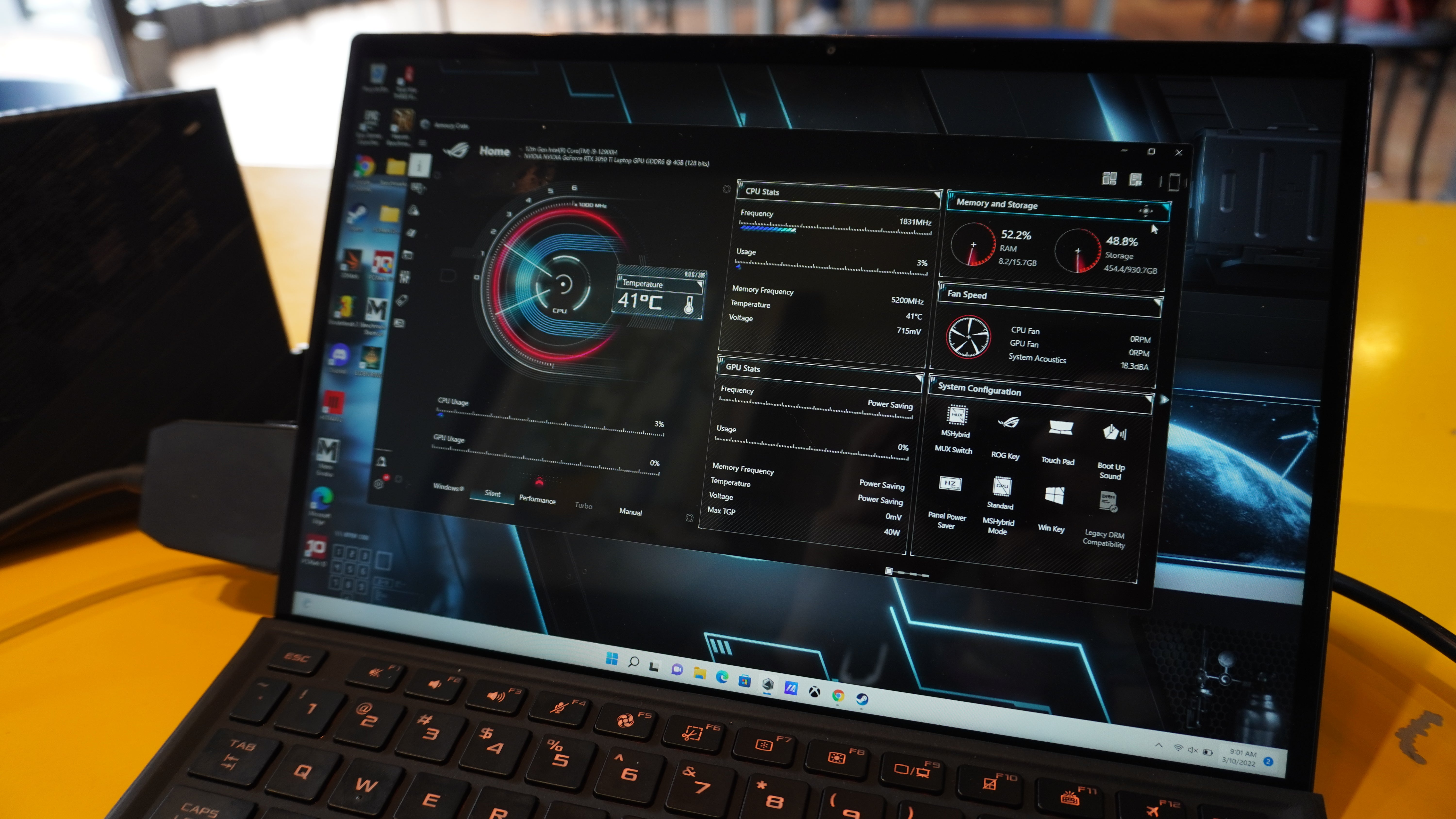 The Asus ROG Flow Z13 comes with Windows 11 and just a bit of extra stuff running on it. Most notably, it has Asus’s Armoury Crate pre-installed. This software offers some fairly in-depth detail on system vitals like CPU and GPU usage, wattage, temperature, and clock speeds, It also provides access to game profiles, quick settings. Asus also pre-installed a Pantone-validate color profile, which should make the display extra useful for creators who need a higher degree of color accuracy. Beyond this, the Asus ROG Flow Z13 is relatively free of bloatware.