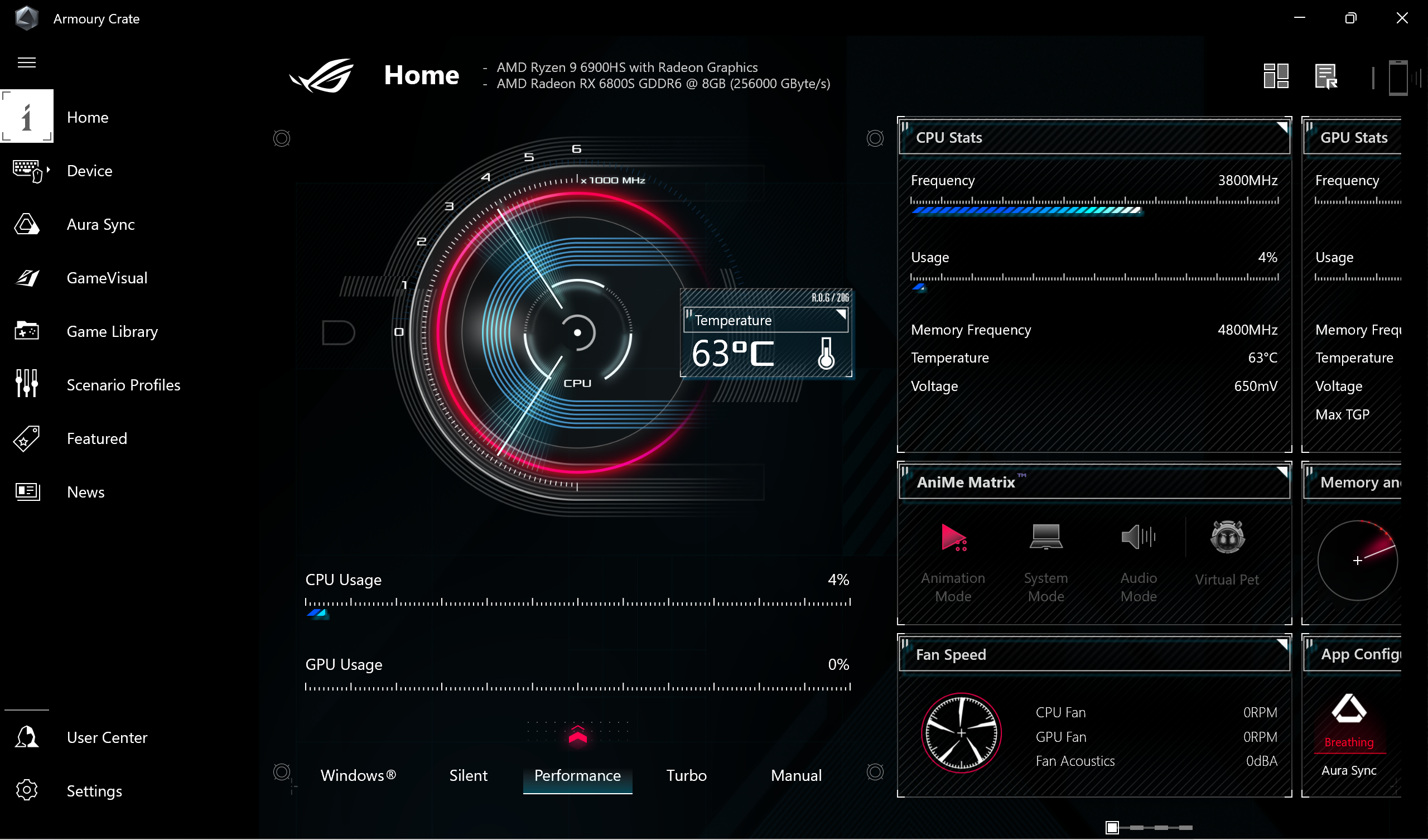 There are several power modes you can pick from in Armoury Crate to fine-tune how the system performs, however, I spent most of my time testing in Performance mode (including the benchmarks noted above), allowing the fans to do their job without getting overly noisy. I did some basic testing in Turbo mode, which adds a performance boost of 5 to 10% when gaming, but it comes at the cost of noisy fans. I was fine with the experience when using Performance mode, and I prefer not to deal with loud fans. But just know you can squeeze a little more power out of the system than what my test results show.