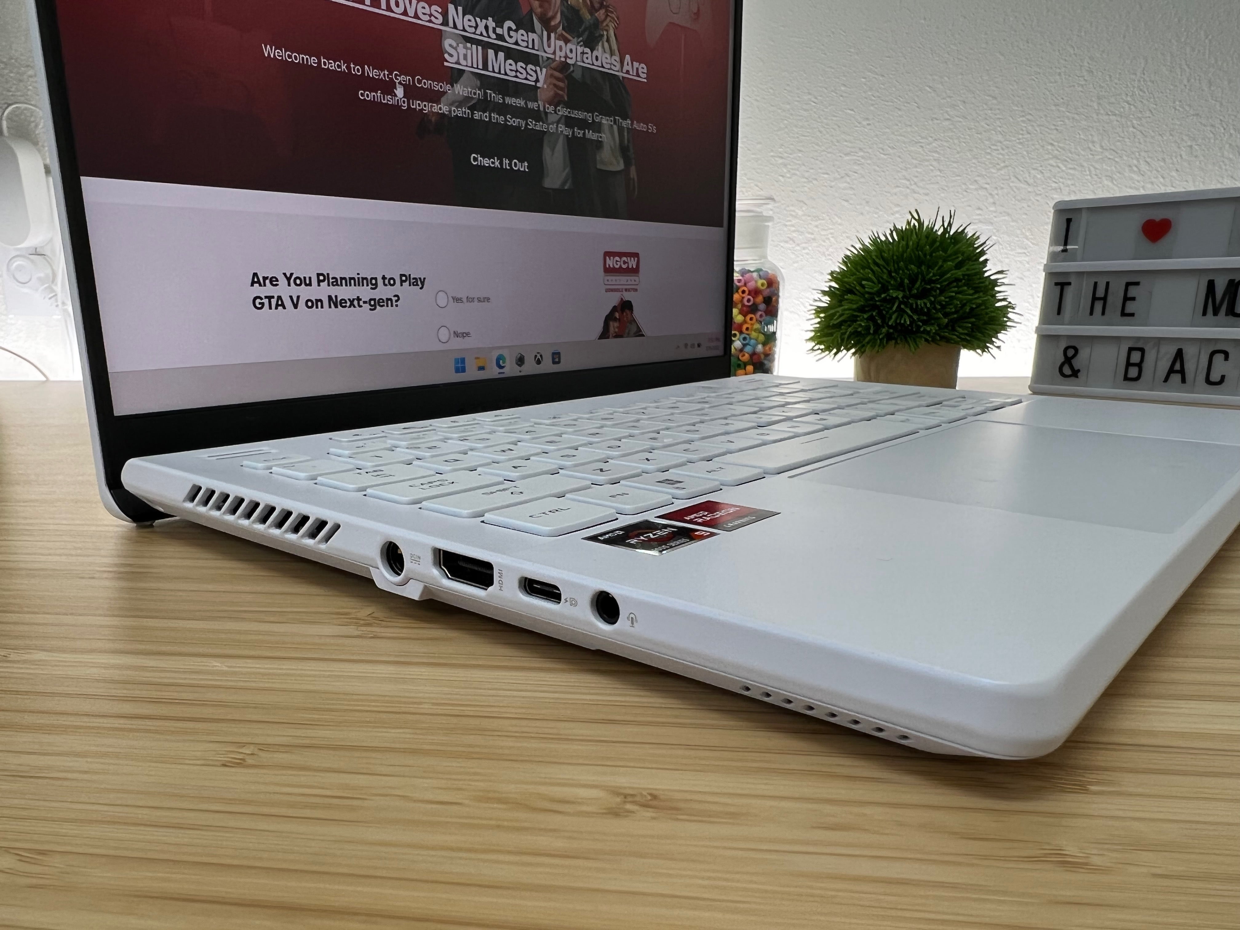 As far as my personal experience using the G14, all I can say is, those benchmarks don't tell the entire story. From using it as my daily work machine to gaming on it at night, I had zero issues with its performance or power. The speakers offer ample depth and direction to both entertainment (Spotify, YouTube) and gaming. When playing Call of Duty: Warzone, for example, I could tell the general direction of a nearby enemy's footsteps or gunshots.