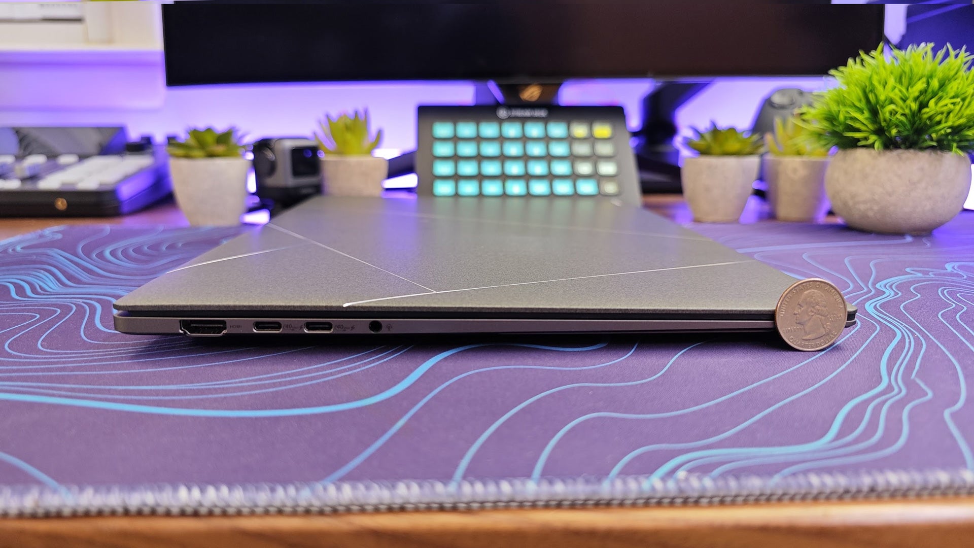 With such an airy, slim design, it’s exceptionally portable. I’ve loved carrying it through the day. As thin as it is, I had no trouble fitting it into my bag, whether I was carrying a backpack or a messenger bag, I never once felt weighed down. My last laptop, the Asus Zenbook 14 OLED, was even lighter by about a pound, but I could barely tell the difference once it was in my bag. The screen size and larger keyboard are definitely worth the trade-off.