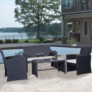Black Rattan 4 PCS Cushioned Outdoor Wicker Patio Set Garden Lawn Sofa Furniture