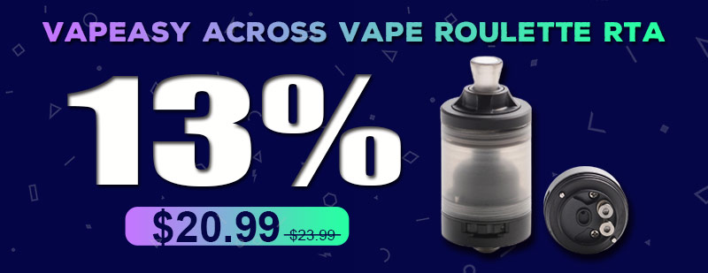 Vapeasy Across Vape Roulette RTA 13% Off, Original price $23.99, now only $20.99.