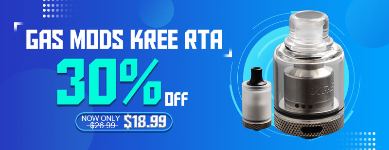 Gas Mods Kree RTA 30% Off, Original price $26.99, now only $18.99.