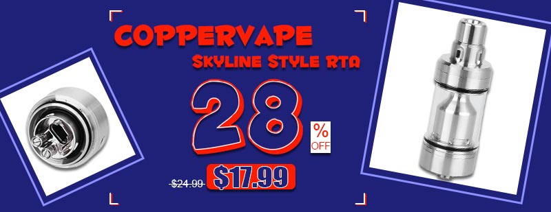 Coppervape Skyline RTA Clone 28% Off, Original price $24.99, now only $17.99.