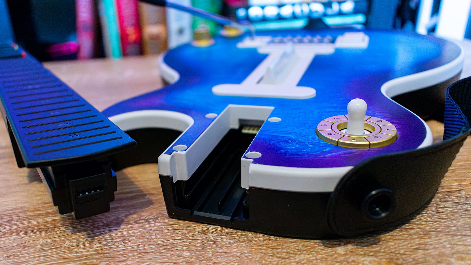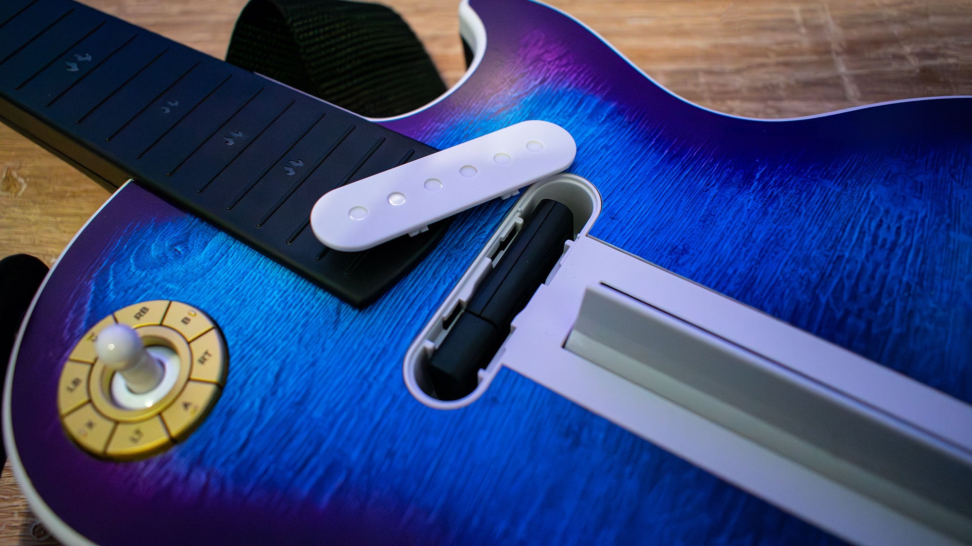 Anyone that’s played a lot of these plastic guitar games in the past knows that there was this strict divide between the “Guitar Hero” feel and the “Rock Band” feel for strum bars, with the latter being much mushier and quieter. The haptic strum bar on the Blueberry Burst edition actually puts it somewhere in the middle, with customization moving it closer to either extreme based on your preference. In the couple of weeks I’ve spent with these guitars, I definitely grew to prefer the haptic strum bar, but the clicky strum bar is incredibly nostalgic, and I could see Guitar Hero faithfuls really preferring it.