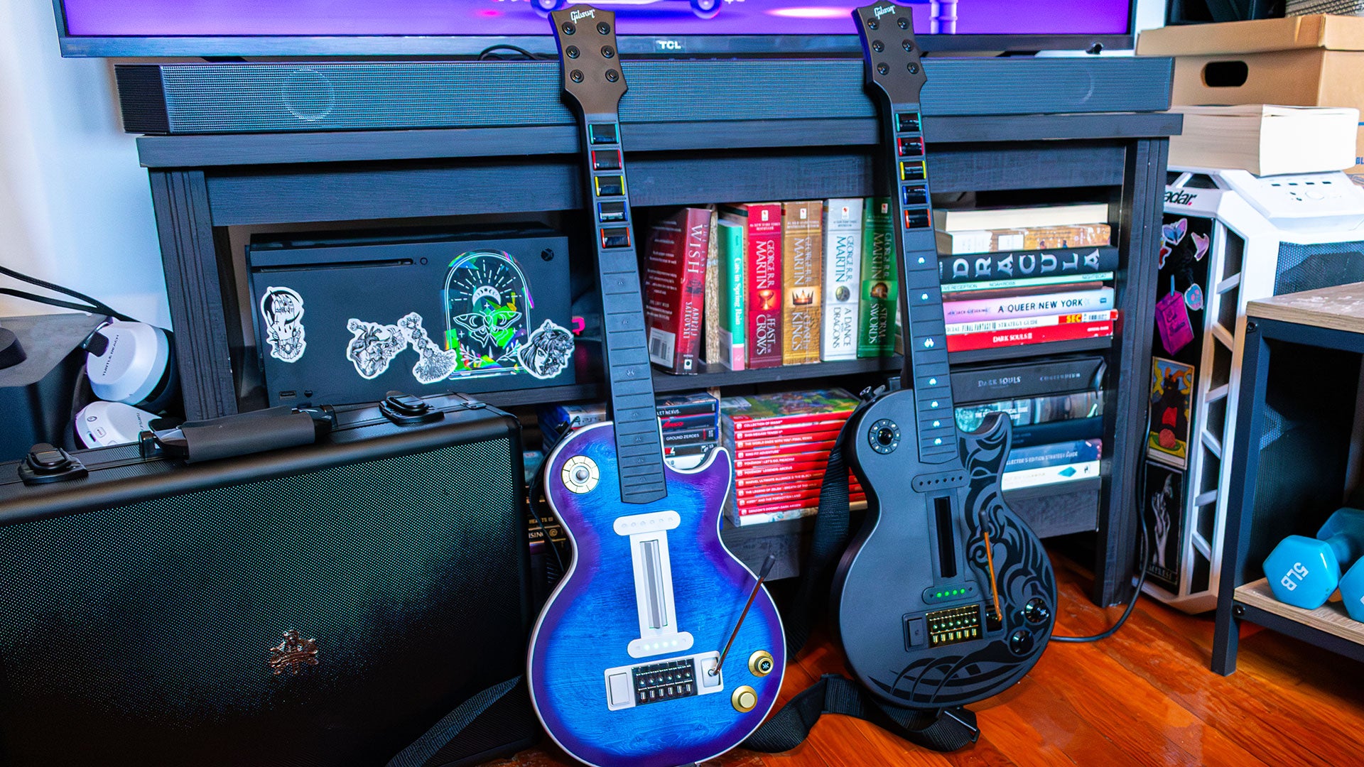 CRKD brought on some folks who worked on the old Guitar Hero controllers to design these Gibson Les Paul designs, and that’s immediately apparent right out of the box. Especially with the Black Tribal Encore Edition, which is essentially the Guitar Hero III controller, just with RGB lighting and a spiffy embossed design on the body. There’s also a Blueberry Burst Pro Edition that has a gorgeous blue colorway with gold and silver accents.
