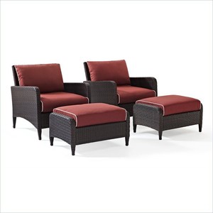Crosley Kiawah 4 Piece Outdoor Wicker Seating Set with Two Ottomans