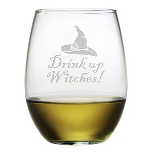 Drink Up Witches Stemless Wine Glass (Set of 4)