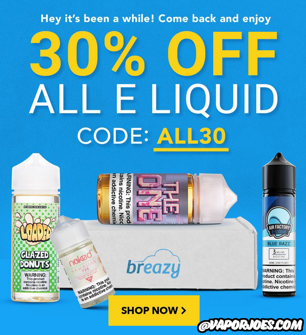 Right now Breazy has their entire ejuice stock on sale. The coupon will work on all juice including juice that is on sale and clearance. This just went live so the stock levels are start dropping quick - get in early before your flavors are out of stock.