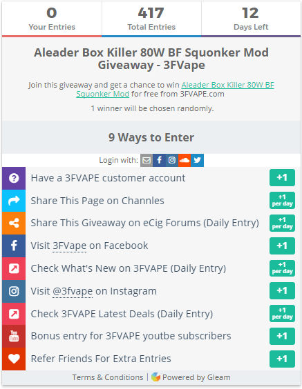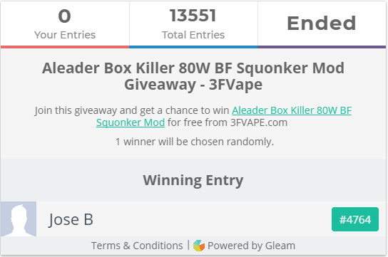 Enter the Aleader Box Killer 80W Bottom Feeder Squonker Box Giveaway now >>> 1 winners will be chosen randomly.