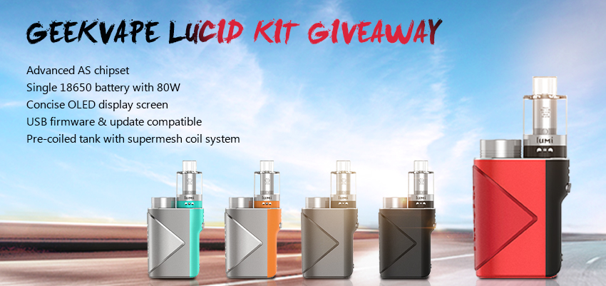 Hello all.What is the new arrival giveway for our dear vapors? ---GeekVape Lucid Kit.