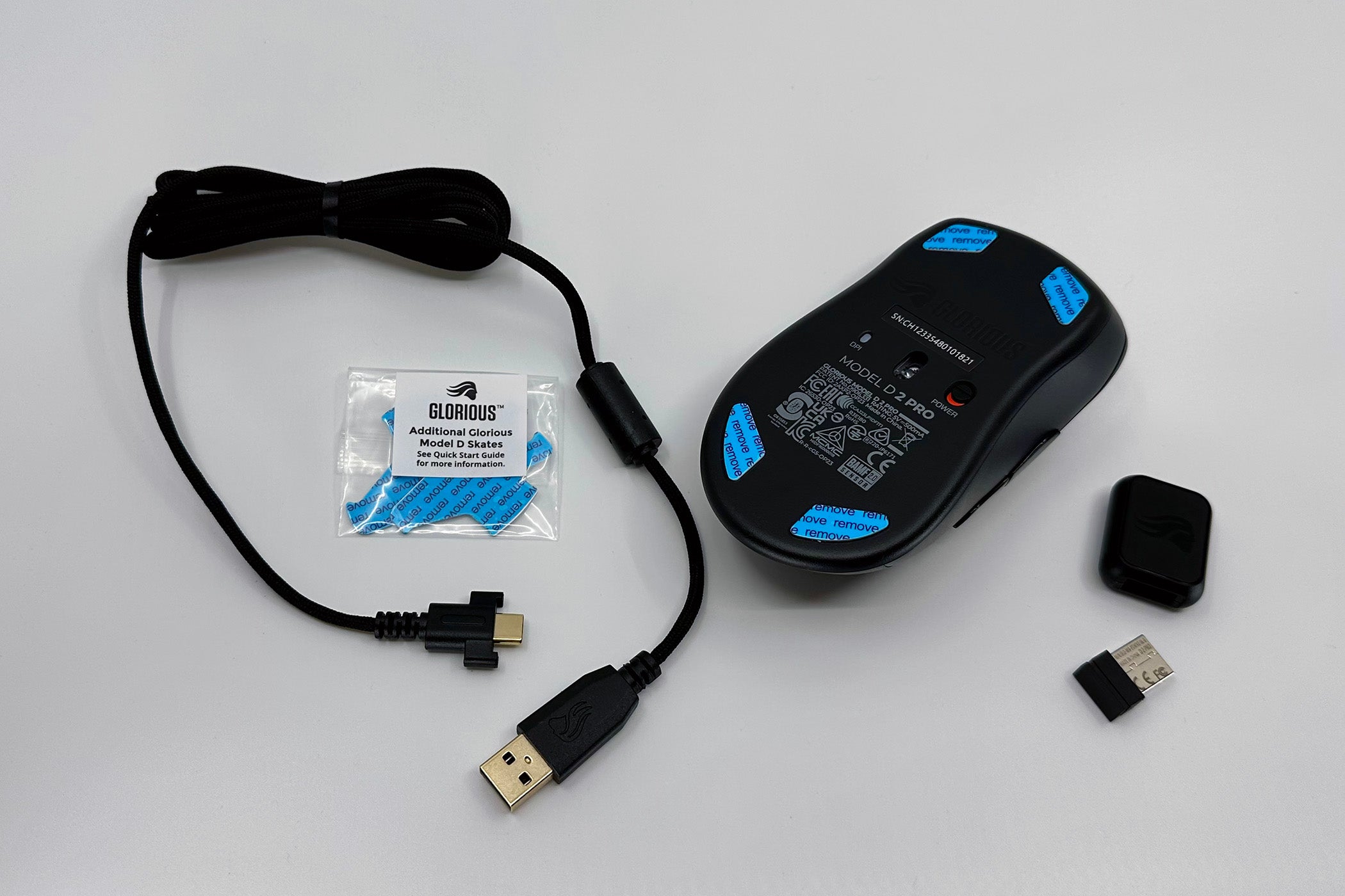 Using any of the mice is as simple as plugging in the included 2.4GHz receiver, or, should you want to use the mouse wired, the included Type-A to Type-C Paracord Charging Cable or equivalent. Of course, the mouse should be fully charged before first use, and you need to remove the protective film on each of the four mouse feet (skates), but otherwise, there's nothing else you have to do for basic operation.