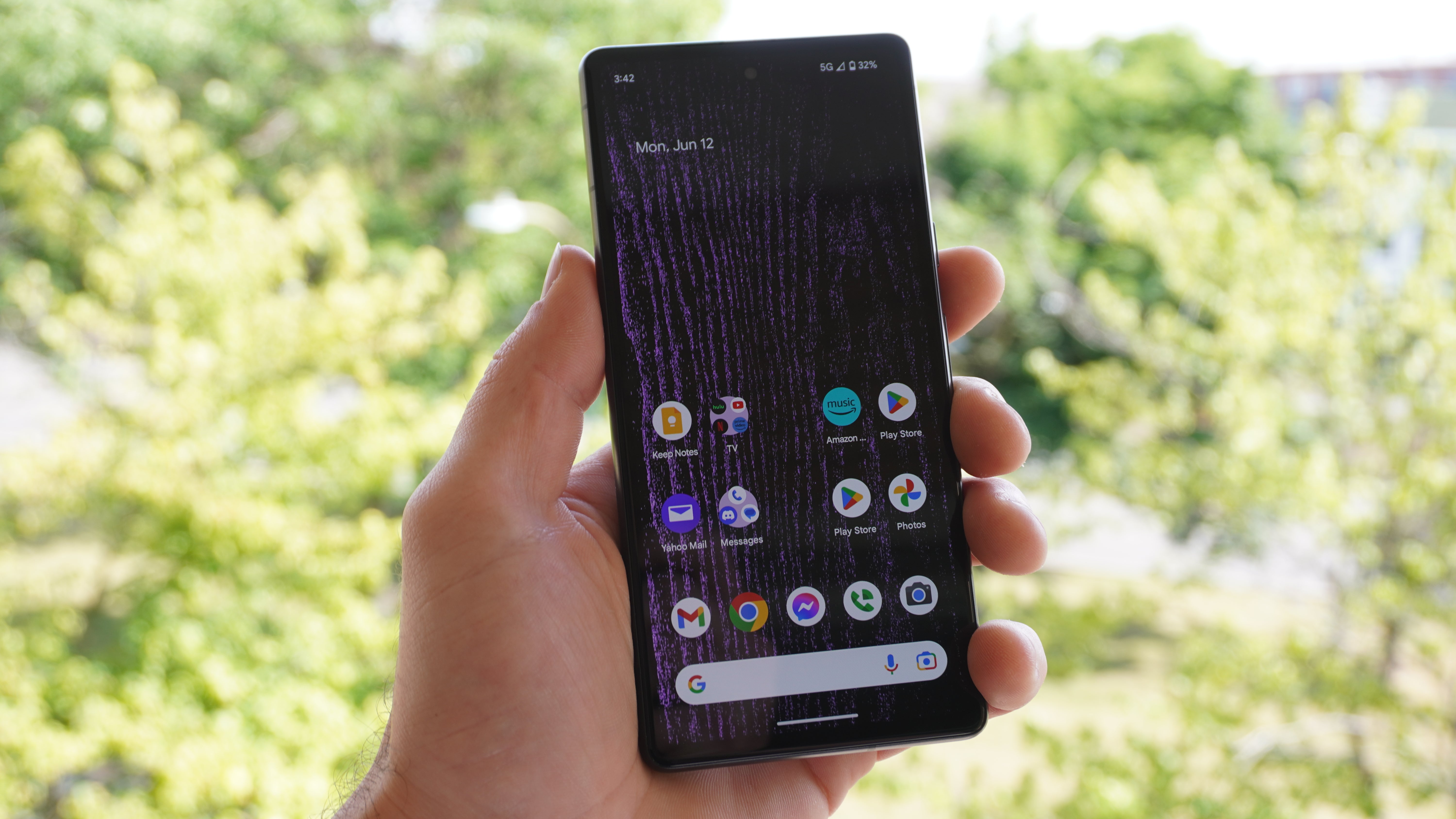 There’s very little about the Pixel 7a to indicate that it’s not just a Pixel 7. The differences are incredibly subtle. To start, the Pixel 7a is just a little smaller, which makes it terribly comfortable in just one hand. It goes for a cozy 6.1-inch display instead of 6.3 inches, but it packs the same 1080 x 2040 resolution as the Pixel 7, which actually gives it an increased pixel density. It’s still an OLED panel with a 90Hz refresh rate, but Google is keeping quiet about its peak brightness, because it’s presumably not hitting the same heights as the Pixel 7’s 1,400 nits. That said, it’s been more than bright enough for everyday use. The bezels on the Pixel 7a aren’t ultra-slim, but they’re not glaring eyesores either.