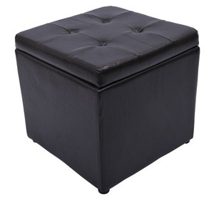 HomCom PU Leather Square Storage Ottoman Footstool Dark Brown – Foot Rest Stool