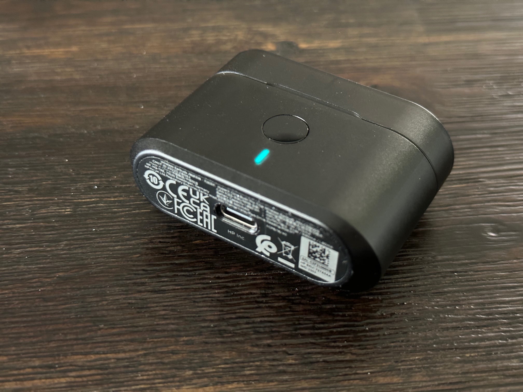 Similar to many other truly wireless earbuds, the HyperX Cirro Buds Pro come packaged in a pocket-sized flip-top case that charges them while not in use. The case itself has a slightly translucent look to it and features a single button on the front that can be pressed to activate a small indicator light that displays pairing or charge status. The flip-top lid feels a bit flimsy when opened, but closes nicely thanks to a magnet built into the front of the case. This ensures the case doesn’t accidentally open up in your pocket when the buds are being charged.