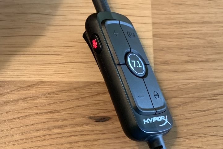 The Cloud Alpha S is very much a riff on the Cloud Alpha, which means its fundamental structure and design are very similar in more ways than not. It has the same sturdy aluminum frame, though its an icy blue on the S. The faux leather covering on the top-band and stitching along the sides are also blue this time. Its mildly noise-cancelling ear cups are, again, made from the plush memory foam found in many HyperX headsets, which are very comfortable over long gameplay, movie, and listening sessions. HyperX claims the leatherette in the Cloud Alpha S is “more breathable” than the original Alpha; I can’t really attest to that, but I will say that your ears still sweat a bit in a warm room. (I don’t hold against that against the designers, but let’s just say that HyperX has not solved the big-headphone-equals-hot-head conundrum.) The detachable mic is also a holdover from the original Cloud Alpha. The wired boom mic has active noise-cancelling to keep shallow breaths and other outside noise out of other players’ ears. The mic is clear, but nothing to write home about, though I will I say it took less time than usual for me to position it than with many others I’ve used. Across the board I’d say the similarities between the two headsets are undoubtedly a good thing. The Cloud Alpha is an incredibly comfortable and clear-sounding piece of audio gear, and the Cloud Alpha S follows suit. HyperX’s 50mm drivers return, providing clear and solid sound across its range. The Cloud Alpha S retains the Cloud Alpha’s “dual-chamber” driver design, which allows the headset to keep bass from booming so loud it muddies other sounds. The Cloud Alpha S expands upon that system by adding a switch on each can that allows you to physically expand or restrict the amount of room the bass driver has to create sound. Across the board, mids and highs come in nice and clear, and having that added bit of control for the bass makes it easy to make spot changes to your sound as you switch from a bass-heavy shooter to something with a softer aural profile. The biggest additions, feature-wise, all revolve around the Cloud Alpha S’ new mixer/remote. The USB-to-3.5mm controller allows you to switch on the headset’s 7.1 simulated surround sound, as well as toggle a couple of quick-and-dirty audio mixes to boost voice chat or game audio. (Also, as you might expect, it has volume controls and a mic mute button). The controller is detachable, and the headset works on consoles when you connect them directly using a 3.5mm jack, but the USB controller is what enables most of the new features, and why HyperX recommends the Cloud Alpha S specifically for PC. Switching the surround sound on and off quickly shows that it can make a sizable difference in how games and other audio sounds, but only to a point. There is a loose suggestion that you are surrounded by sound, but it is a far cry from the positional audio found in higher-end headsets, such as HyperX’s own Cloud Orbit S. Likewise, the game and chat mix buttons fall flat. They are no replacement for going into a game’s settings and changing its audio levels yourself. They can, however, be a useful emergency adjustment when you don’t have time to fix things mid-match.