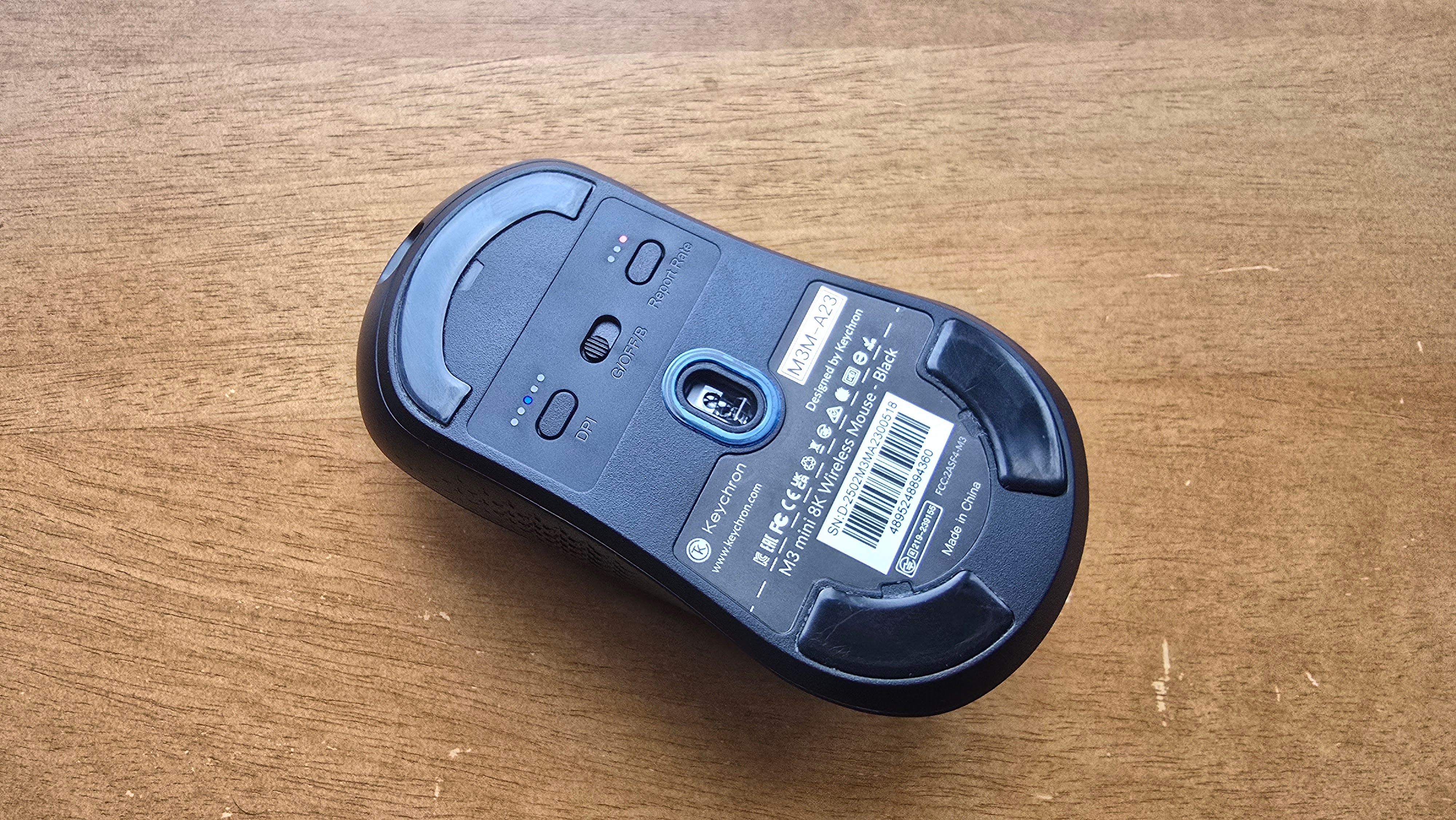 I like how simple Keychron makes it to switch between polling rates and DPI. Both have a dedicated button on the bottom of the mouse, and both buttons have their own indicator LEDs so that you always know your current setting. As somebody who likes to switch regularly – I generally bump up my polling rate and lower my sensitivity as I move from work to gaming – I appreciated how streamlined it felt. There's also a switch to toggle between the fast 2.4Ghz wireless connection and Bluetooth.
