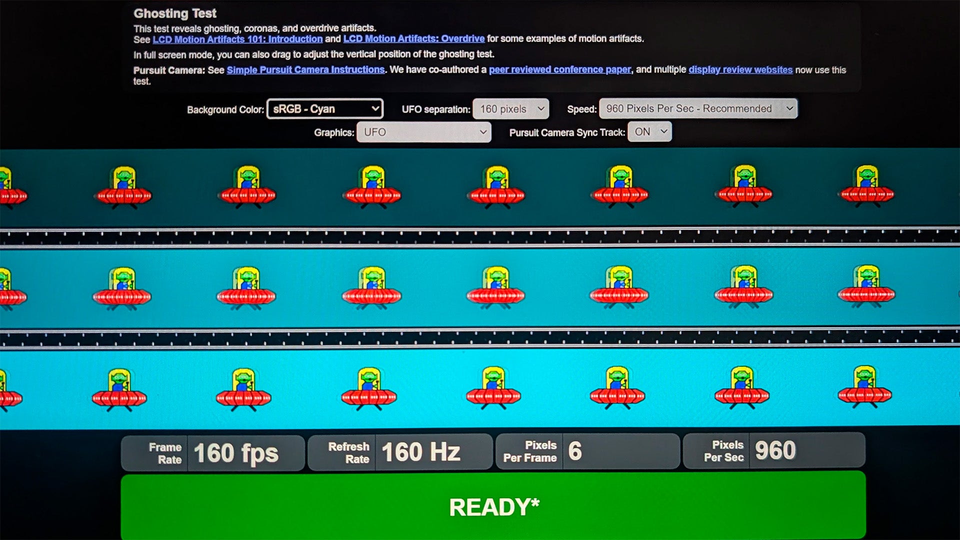 Its responsiveness isn’t going to rival any OLED, but it’s going to be perfectly fine in either of its two modes for most gamers. In the BlurBusters TestUFO ghosting test, at 4K, we don’t see the same level of clarity as an OLED and there’s a bit of smearing. The results are good for an IPS display, however, and it’s fast enough that ghosting isn’t a concern in real-world gaming. In its 1080p mode, it’s slightly better, highlighting the impact of its faster 320 Hz refresh rate.