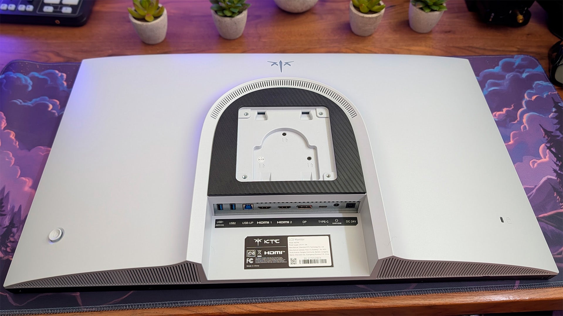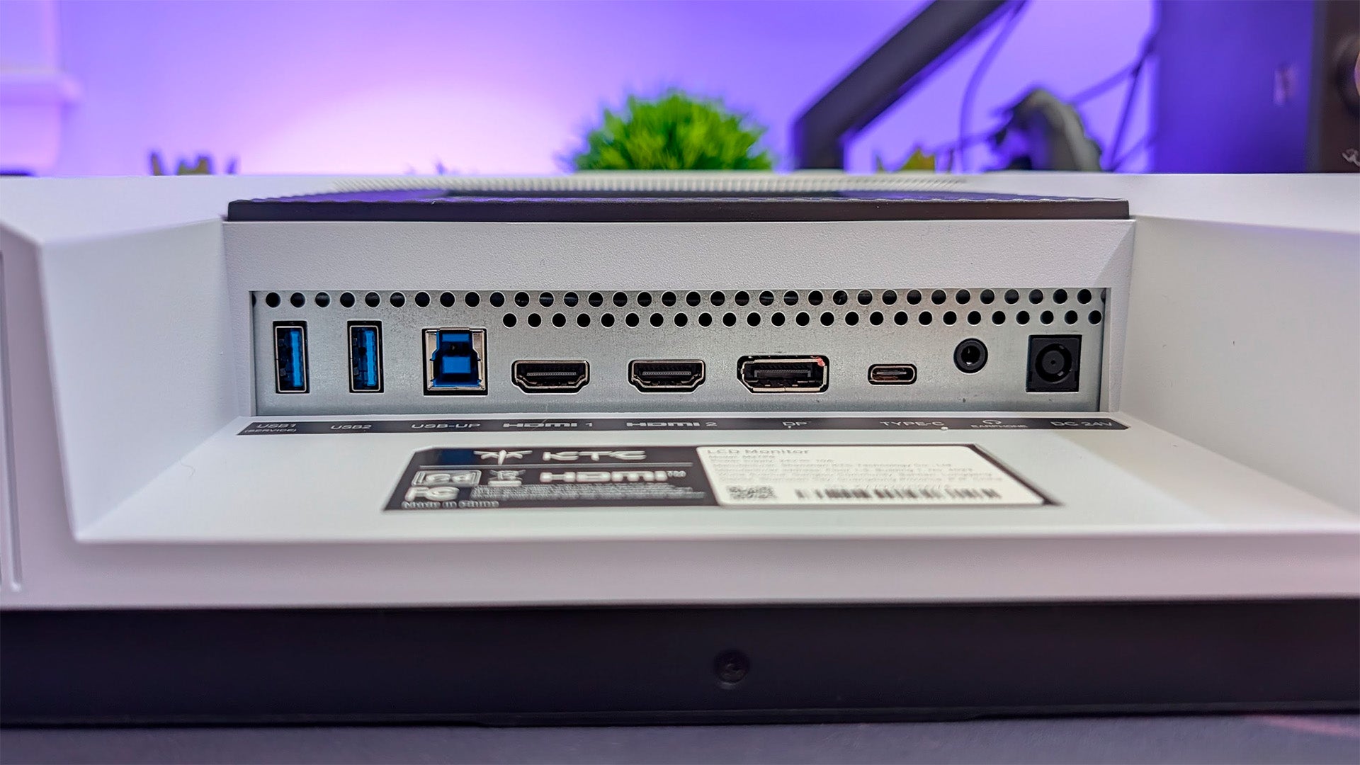 Another area that tends to be scaled back is connectivity, but again, KTC goes the opposite direction. The monitor comes with two HDMI 2.1 ports, one DisplayPort 1.4, a USB Type-C that supports both video and up to 65 watts of power delivery and even includes an integrated USB hub with two USB 3.0 Type-A ports for peripherals, a Type-B to connect back to your PC, and a headphone jack. The monitor also has KVM functionality to quickly swap peripherals between two systems, such as a PC and console.