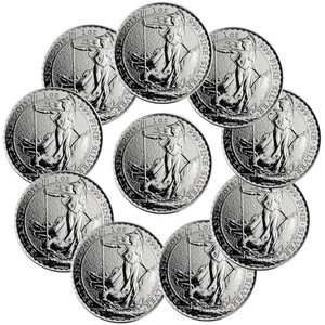 Lot of 10 - 2015 Great Britain 1 Troy Oz .999 Silver Britannia 2PD Coin SKU33556