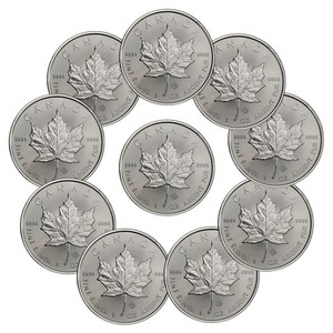 Lot of 10 - 2016 Canada 1 Troy Oz .9999 Fine Silver Maple Leaf $5 Coins SKU37996