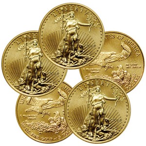 Lot of 5 - 2014 1/10 Troy Oz Gold American Eagle $5 Coins SKU30827