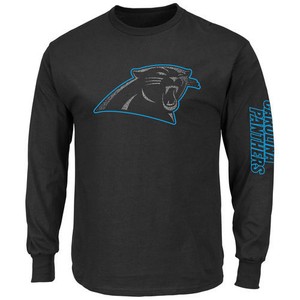 Men's Majestic Black Carolina Panthers Up And Over Long Sleeve T-Shirt