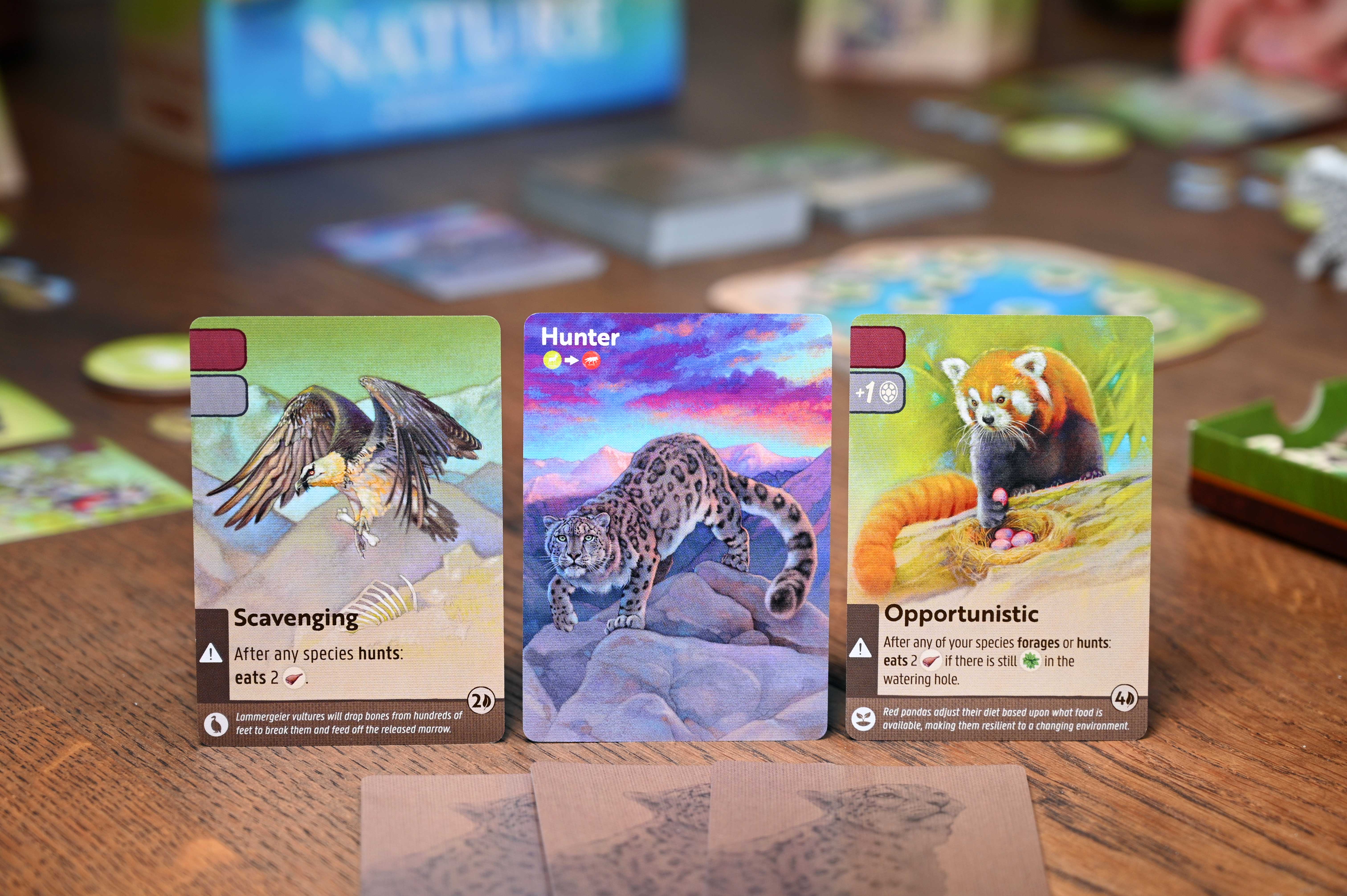 By at measure, Nature is predominantly a success. There are several expansion modules that add things such as dinosaurs, flying creatures, random events, and environments such as the Amazon or Arctic Tundra. Most add a new deck of trait cards which are kept separate from the primary set of cards. The unified implementation makes for easier integration, with setup and teardown being quite simple. The framework also allows for multiple expansions to be used together in order to tweak the experiences. This is the strongest quality of Nature, as it plays quite differently depending on the chosen content.