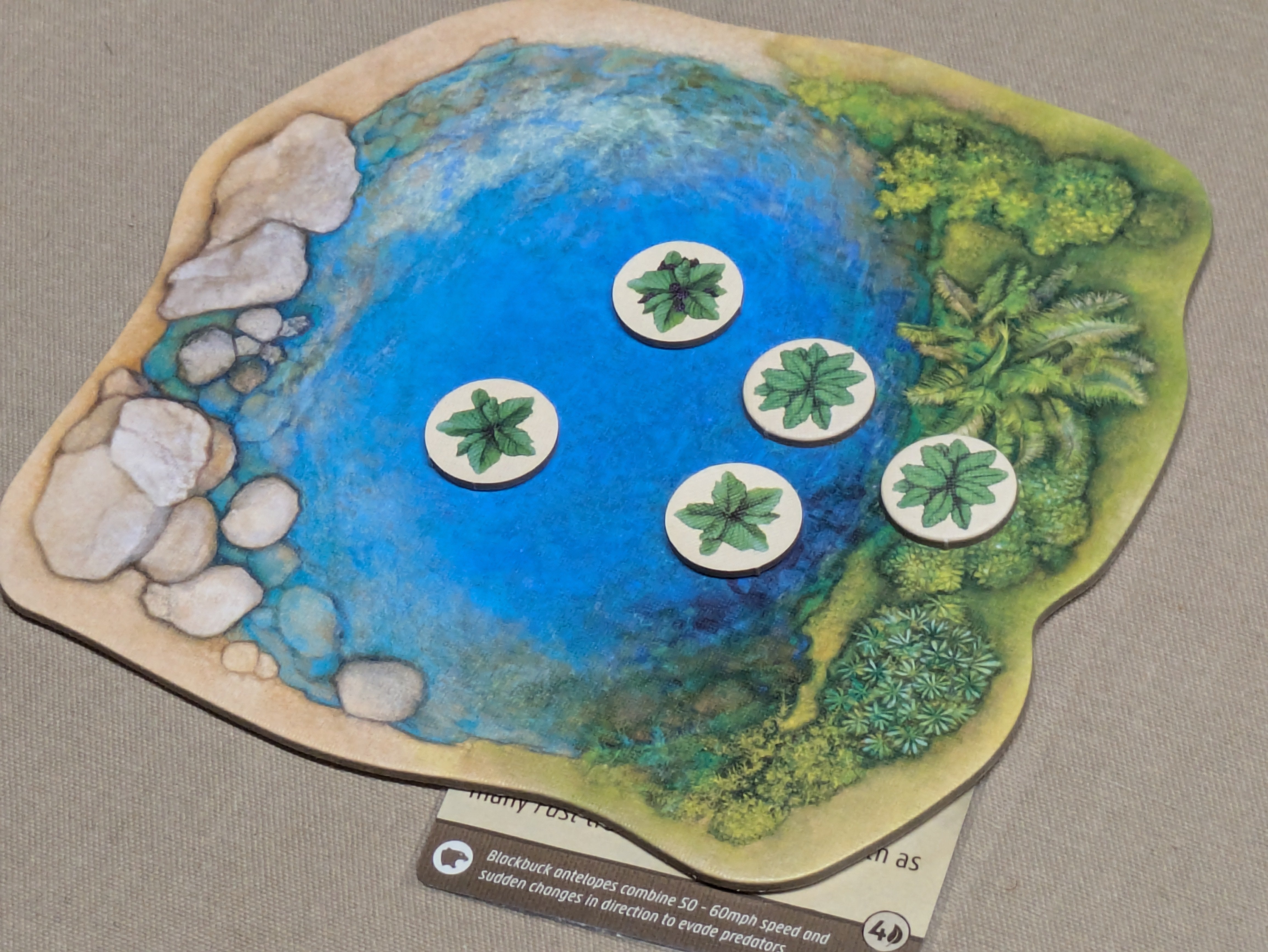 The environmental pressures that incentivize adaptation are mainly a result of the hunter system. When you are playing cards during your turn, you may always slap a hunter trait onto one of your species. This makes them carnivores, shirking the watering hole and instead seeking to outmaneuver prey and feed on their population. A reason to do this is that the watering hole plant food is limited, particularly late game when the number and population of species has escalated.