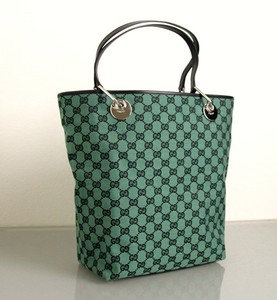 NEW Authentic GUCCI Eclipse GG Canvas Tote Shoulder Bag Handbag Green 285582