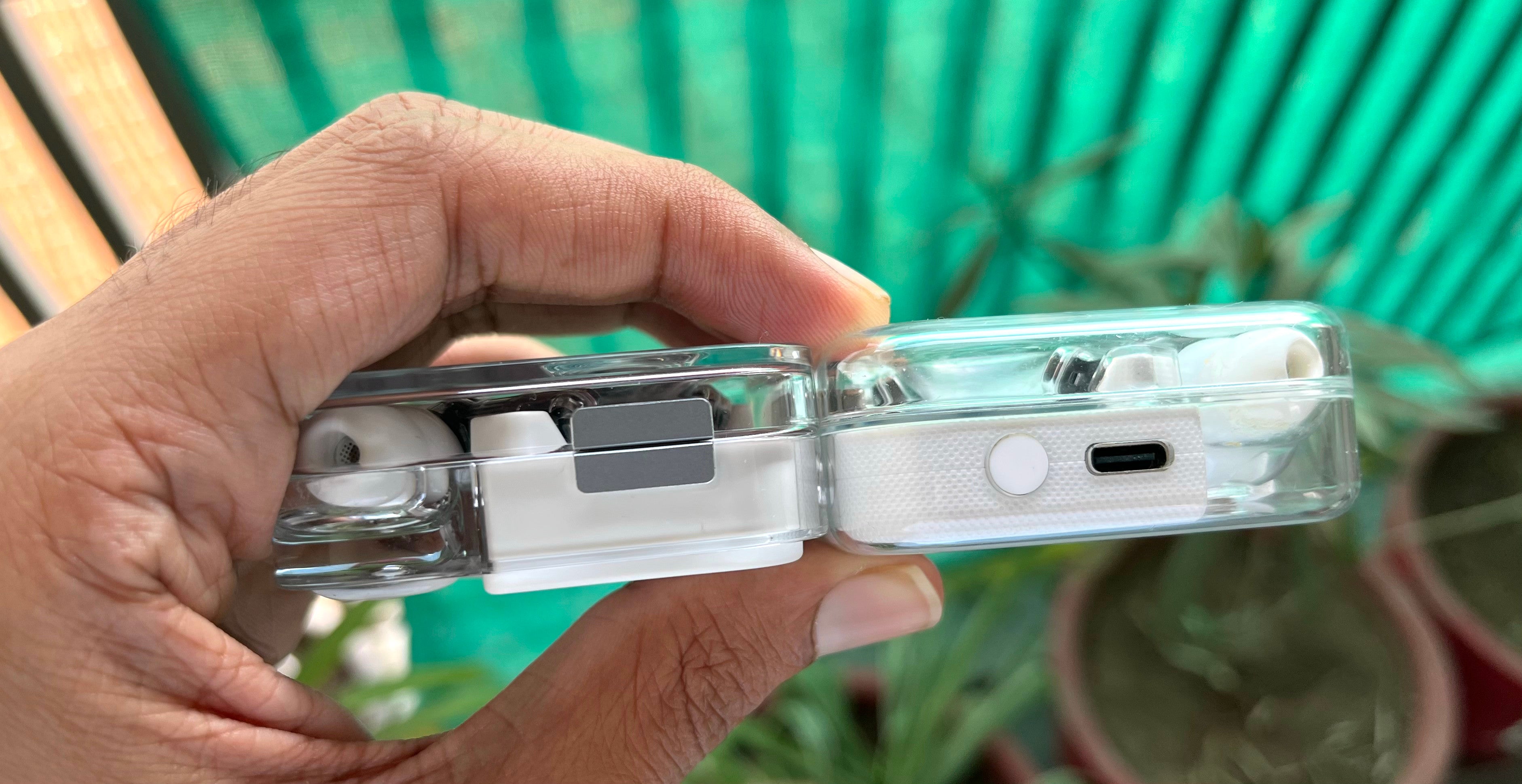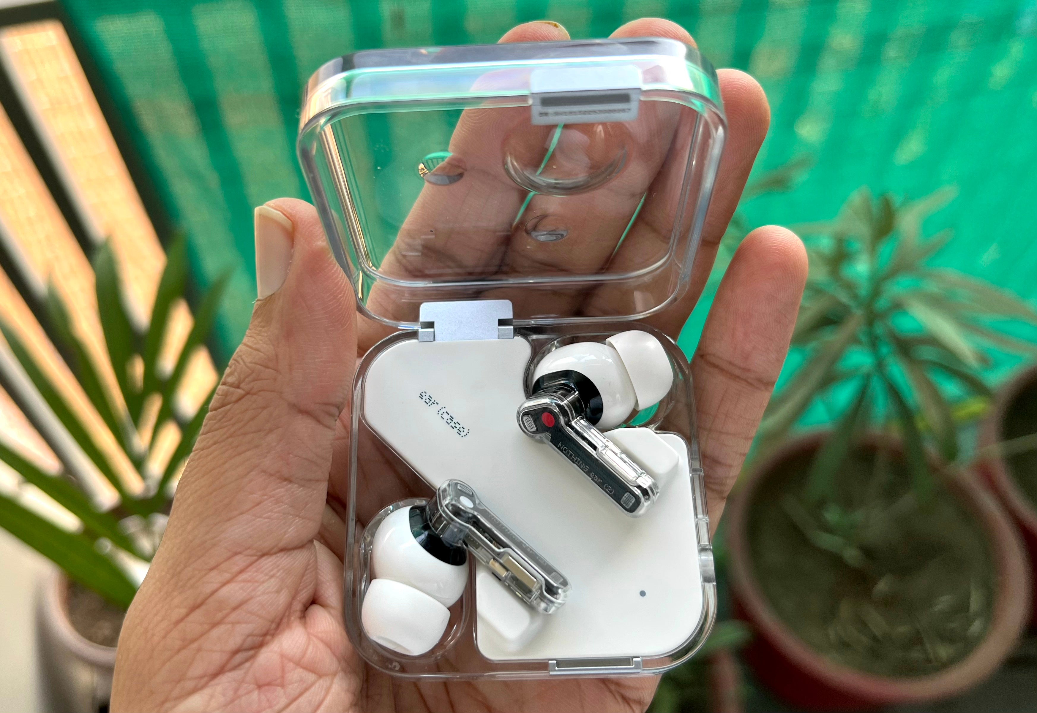 While there are no cosmetic differences from their predecessor, Nothing has made a handful of practical changes to the build. The case is now smaller and lighter, and easier to open with one hand. Much of that can be credited to the plastic housing inside that holds the charging tech. Its bottom now protrudes out of the transparent case, which offers a better grip on the base.