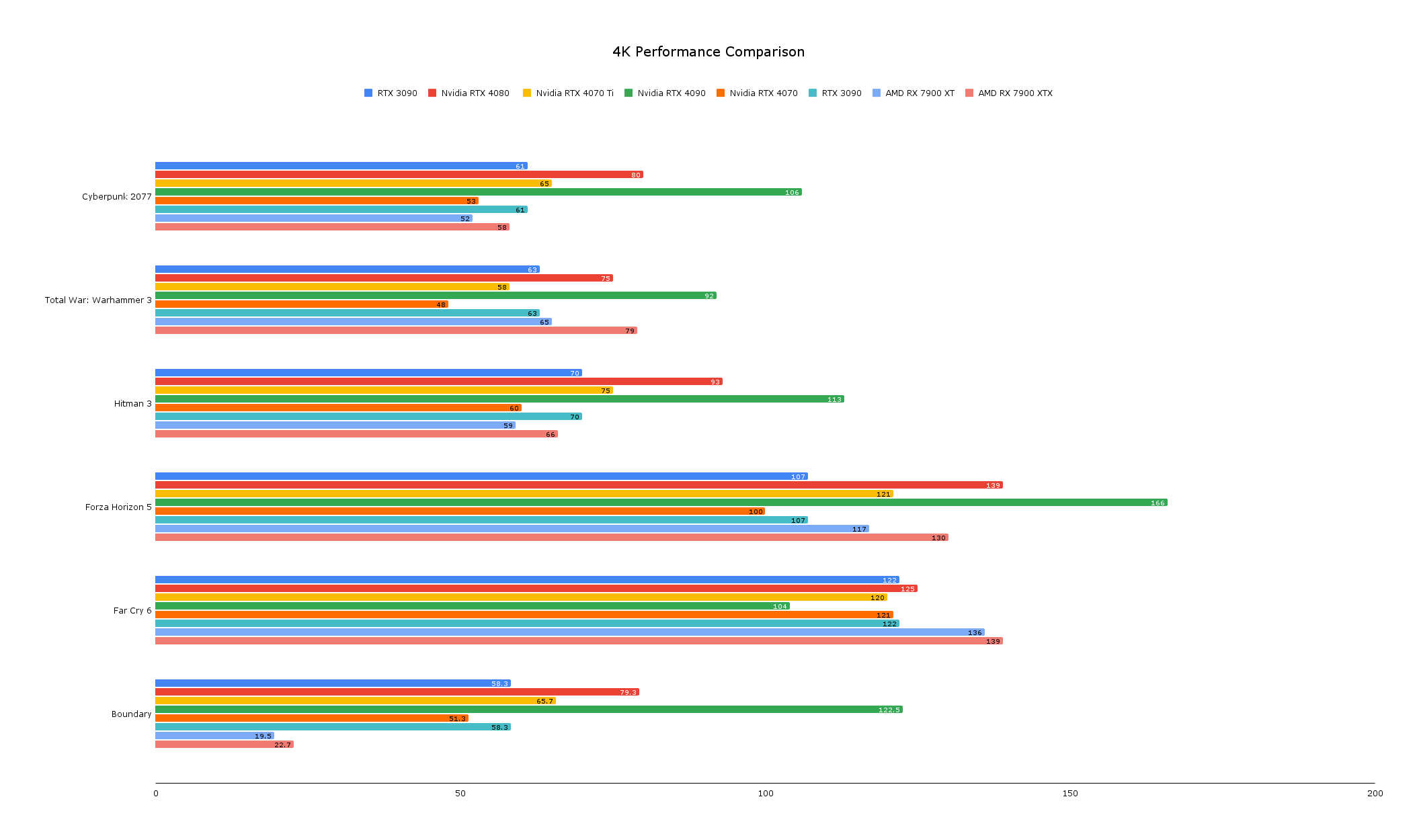 In Cyberpunk 2077 at 4K, the RTX 4070 managed 53 fps to the RTX 4090’s 106 fps, and in Forza Horizon 5, the 4070 managed 100 fps to the 4090’s 166 fps. So while the RTX 4070 is only theoretically 45% as fast as the RTX 4090, in actual games, it’s closer to 50-60%. And when the RTX 4070 is almost a third of the price, it’s hard to justify saving up for months for the more expensive flagship.