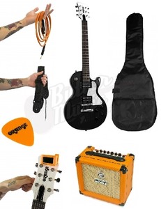 Orange Guitar Pack - Black Guitar, CR12L Amplifier, Strap, Picks, Tuner, +Cable
