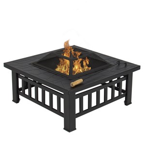 Outdoor 32" Metal Firepit Backyard Patio Garden Square Stove Fire Pit With Cover