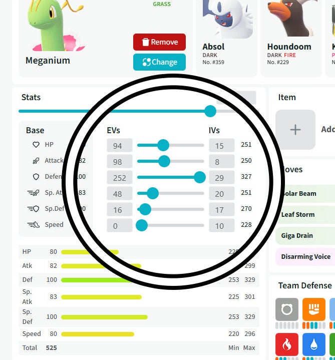 Now it's time to sort out the EVs and IVs, which is where things get a little complicated. This is because both are considered Hidden Stats, meaning you can't see their exact values in-game. There's a quick Hidden Stats explainer further along in this guide if you want to learn more about how exactly EVs and IVs work.