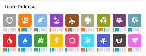 Team Defense will give you an idea of what types your team currently includes (based on both Pokémon and moves) and the weaknesses you need to keep an eye out for. A blue line means that you've included these Pokémon types, while a red line means one of your included Pokémon is weak to this type.